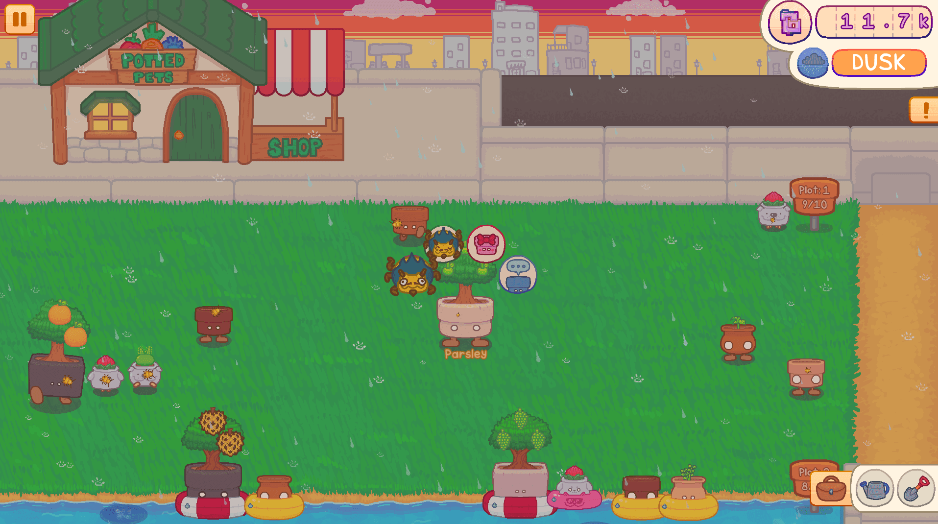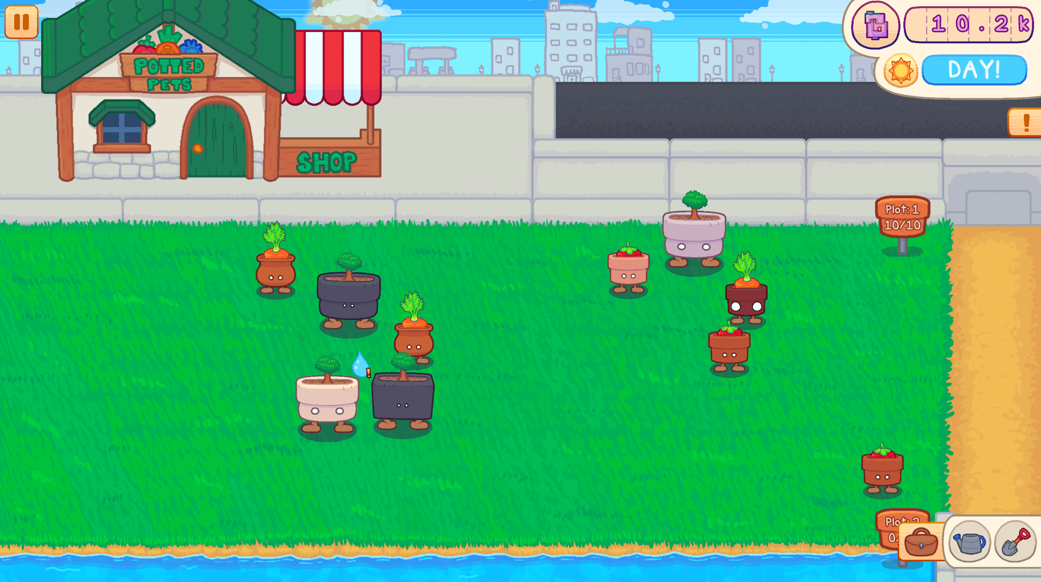 Players will spend their time cultivating their garden while simultaneously growing a personal relationship with their collection of little guys. Your pots will waddle around, express themselves, ask for water, living and breathing in the environment you create for them. By helping your pots grow and thrive, your garden expands and grows too! Players can plant all sorts of seeds in their “Potted Pets,” increasing their profits, and helping them spread their garden further. Overall, through personal connection and a satisfying game loop, Potted Pets delivers a relaxing, customizable experience to brighten up your busy day! 🌱
